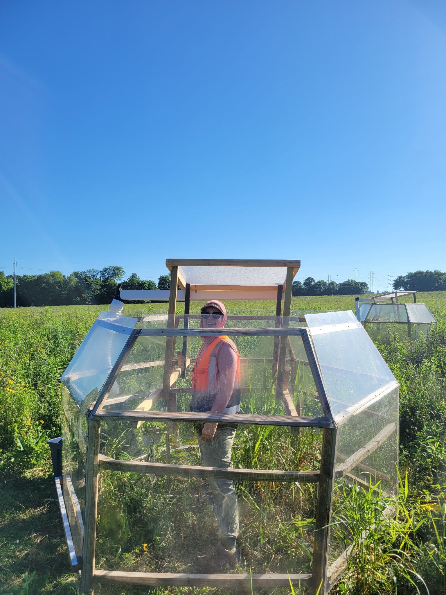 Climate domes used in field experiments in SGI managed Google Prairie in Clarksville, TN. PC: Laura Hunt.